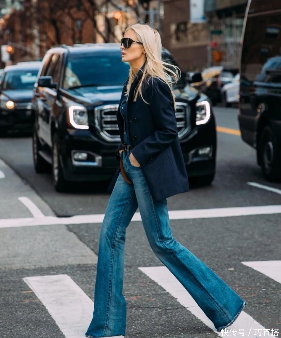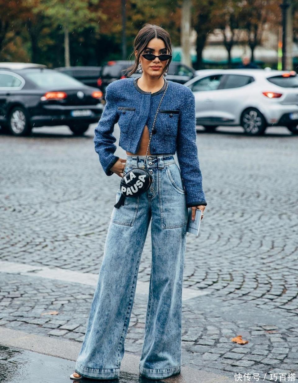 第一,牛仔裤越长越高级,和以前露脚踝的牛仔裤不同,今年春天拖地牛仔裤才是顶流。